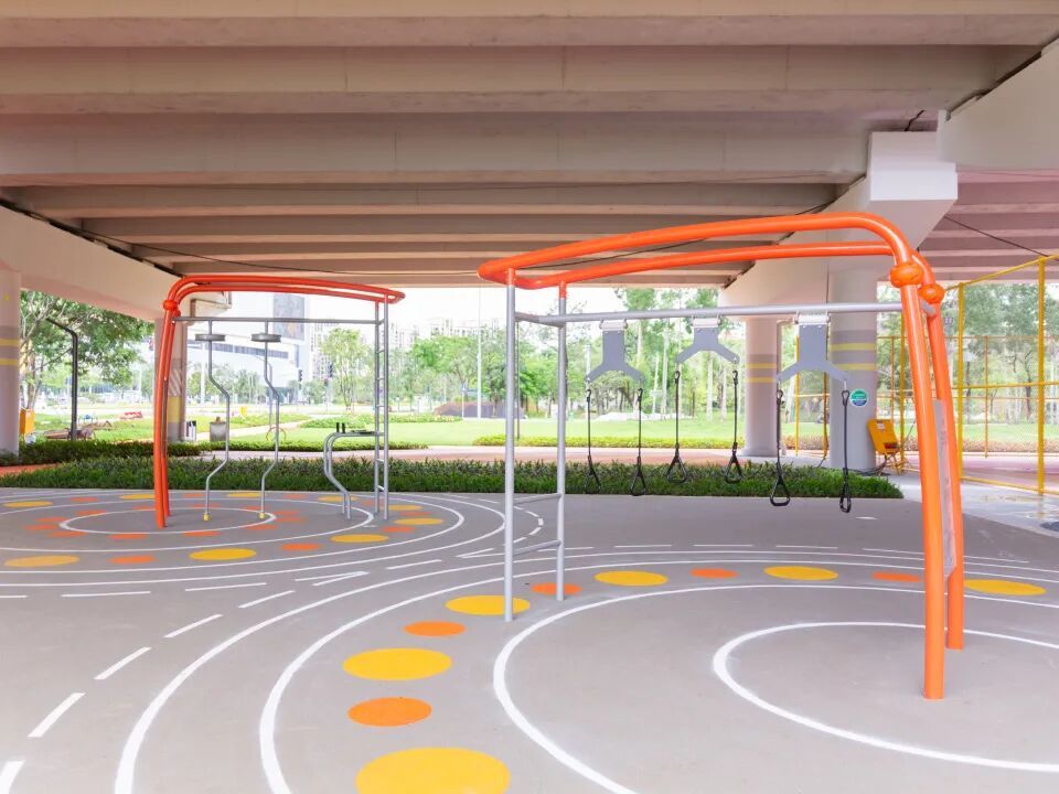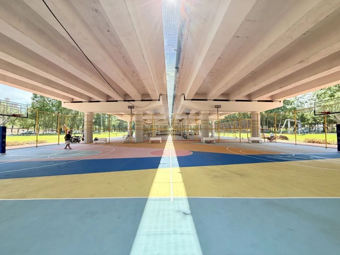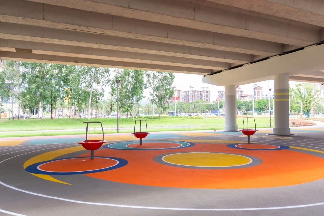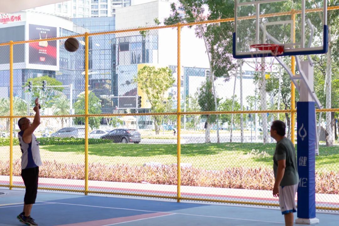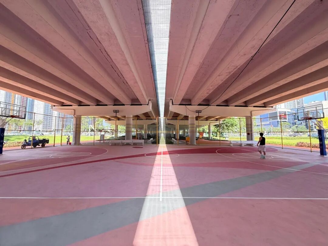 继蕉门河中心区两岸桥下空间开放后,这一处新空间进一步拓展了功能。这里新增两个匹克球场、两个篮球场、两张乒乓球桌,同时增强儿童游乐和成人健身区域。