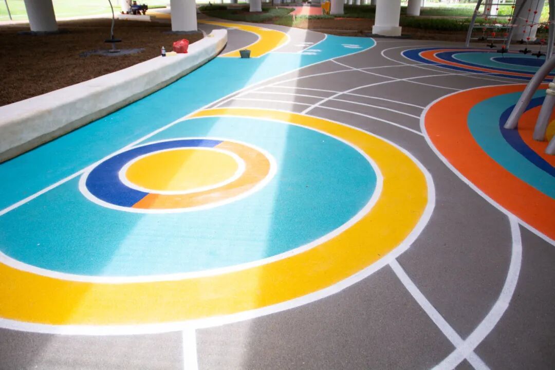近日,龙光棕榈水岸南区、南沙区第二幼儿园临街一侧打造了“粉色海洋”和“趣味沙滩”两处儿童社交场地。