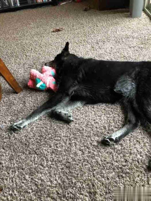 "年轻的狗狗让你憧憬未来十几年的陪伴,而老年犬让你学会珍惜眼前的每一刻。每个清晨看到她安详地睡在身边,每次看到她叼着恐龙向我摇尾巴,我都会提醒自己:此刻,就是最好的时光。"