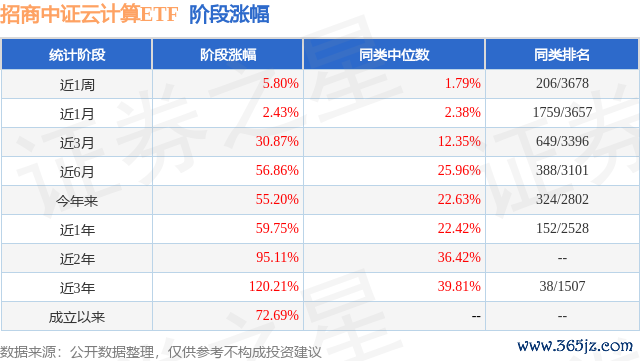 从业绩表现来看,招商中证云计算ETF基金过去一年净值涨幅为33.13%,在同类基金中排名277/2216,同类基金过去一年净值涨幅中位数为11.09%。而基金过去一年的最大回撤为-27.09%,成立以来的最大回撤为-51.45%。